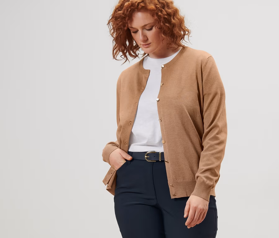 - Ten kardigan zawiera włókna ze zrównoważonego drewna.
