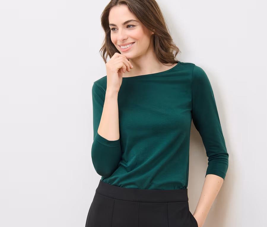 Bluzka z rękawami o długości 3/4, ciemnozielona