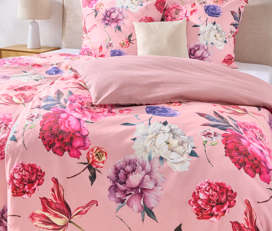 - Jedna strona różowa z kwiatowym wzorem, druga strona różowa
