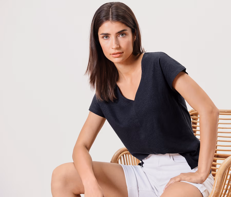 Bluzka z mieszanki materiałowej z zawartością lnu, granatowa