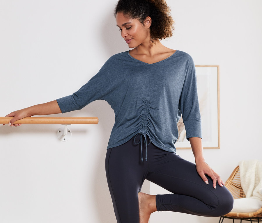 - Koszulka do jogi i treningu z zawartością materiału z recyklingu