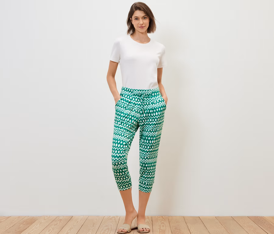 Wzorzyste spodnie dżersejowe o długości 3/4