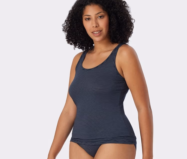 Topy na ramiączkach z modalem SCHIESSER, 2 sztuki, granatowe, w paski