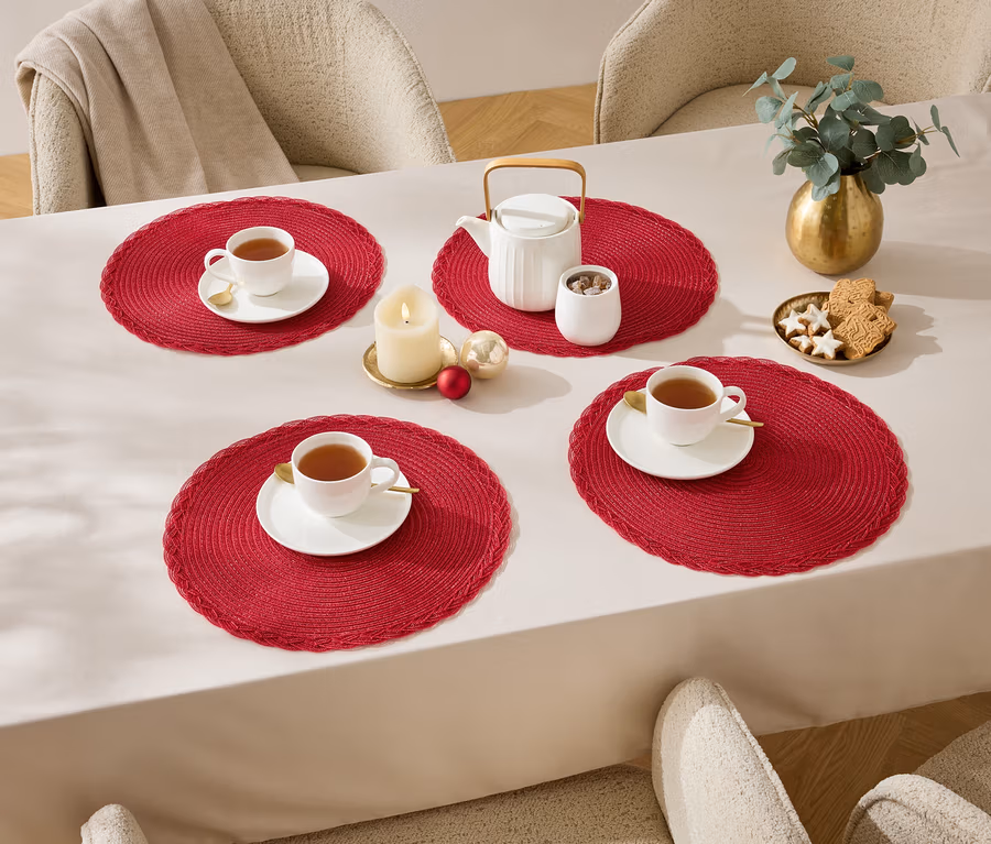 Okrągłe podkładki pod talerze, 4 sztuki, czerwone