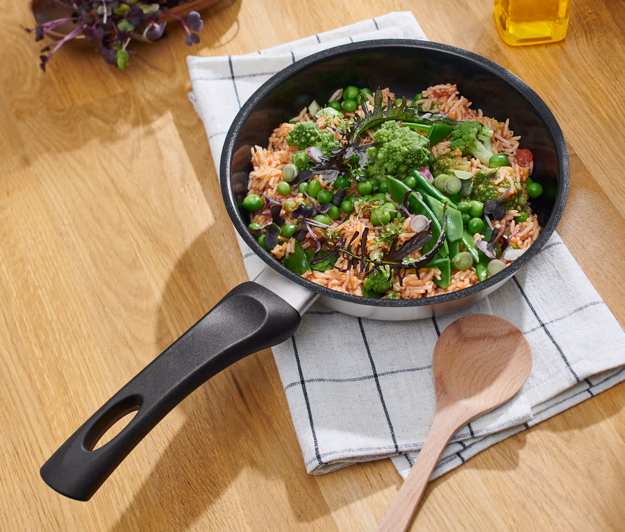 - Wysokiej jakości powłoka nieprzywierająca Greblon CK2 Q-LINE CK 3000 wyprodukowana całkowicie bez surowców PFAS – idealna do smażenia na niewielkiej ilości tłuszczu, zapobiega przypalaniu się i przywieraniu, łatwa w czyszczeniu