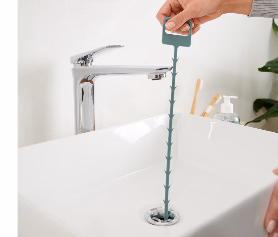 - Łatwe w użyciu: czyścik wsunąć do odpływu, obracając nim w lewo i prawo oraz przesuwając go w dół i górę, a następnie powoli wyciągnąć, nie przestając nim obracać.