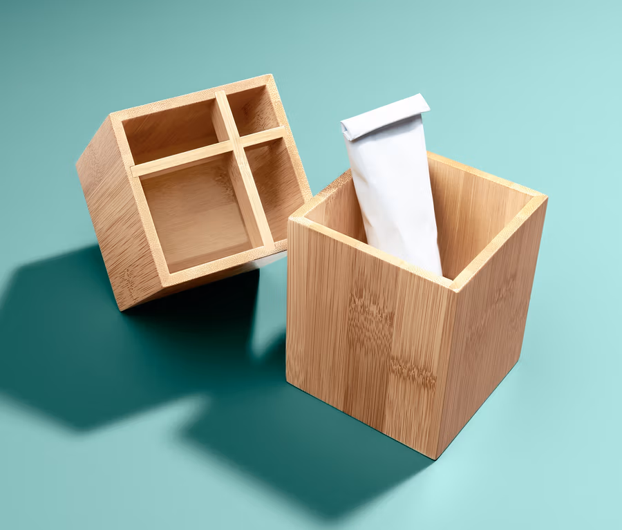 W tych dwóch drewnianych pudełkach znajdzie się idealne miejsce do przechowywania pędzli do makijażu, gumek do włosów, pasty i szczoteczek do zębów. Ponieważ oba organizery są wykonane z wysokiej jakości drewna bambusowego, wyglądają bardzo elegancko i stanowią idealną dekorację do łazienki lub garderoby. A jeśli nie potrzebujesz mniejszych przegródek: podziałkę można wyjąć z organizera.