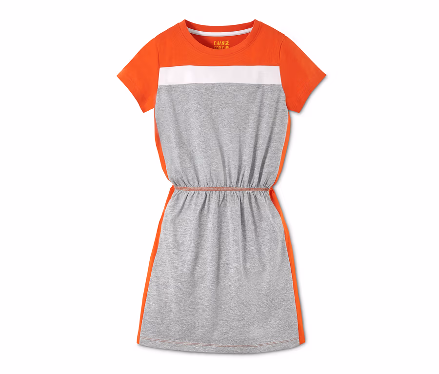 Sukienka dżersejowa, szara nakrapiana z pomarańczem