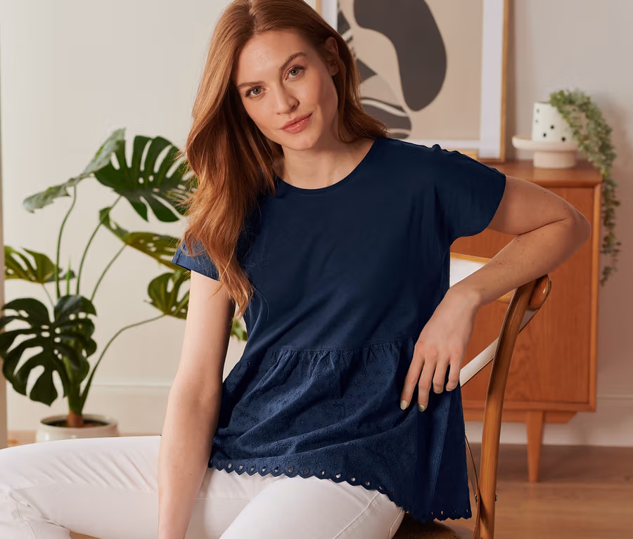 Bluzka z mieszanki materiałowej z haftem, granatowa