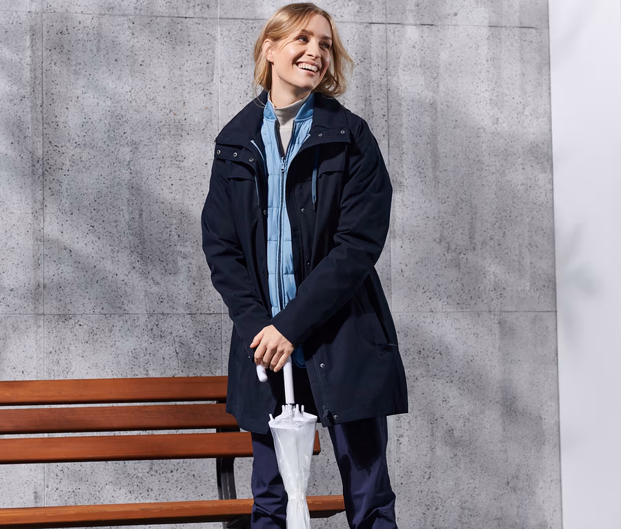 - 3 w 1: płaszcz przeciwdeszczowy i pikowana kurtka, można nosić osobno lub w połączeniu