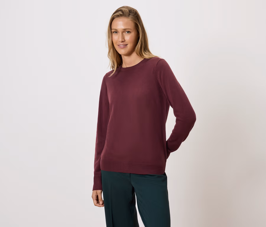 Cienki sweter z wełny merino, ciemnoczerwony