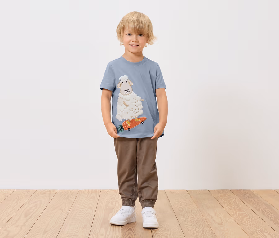 - 2 różne wzory: 1x z pluszową aplikacją i haftem, 1x z naszytą kieszenią na piersi i nadrukiem