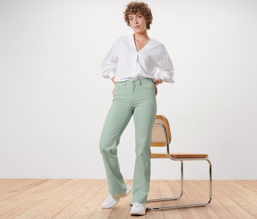 Spodnie dżinsowe dzwony – fason „Lou”, miętowe