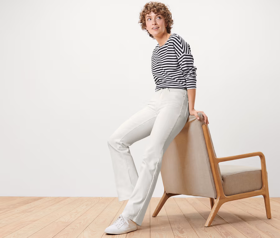 Spodnie dżinsowe dzwony – fason „Lou”, kremowobiałe
