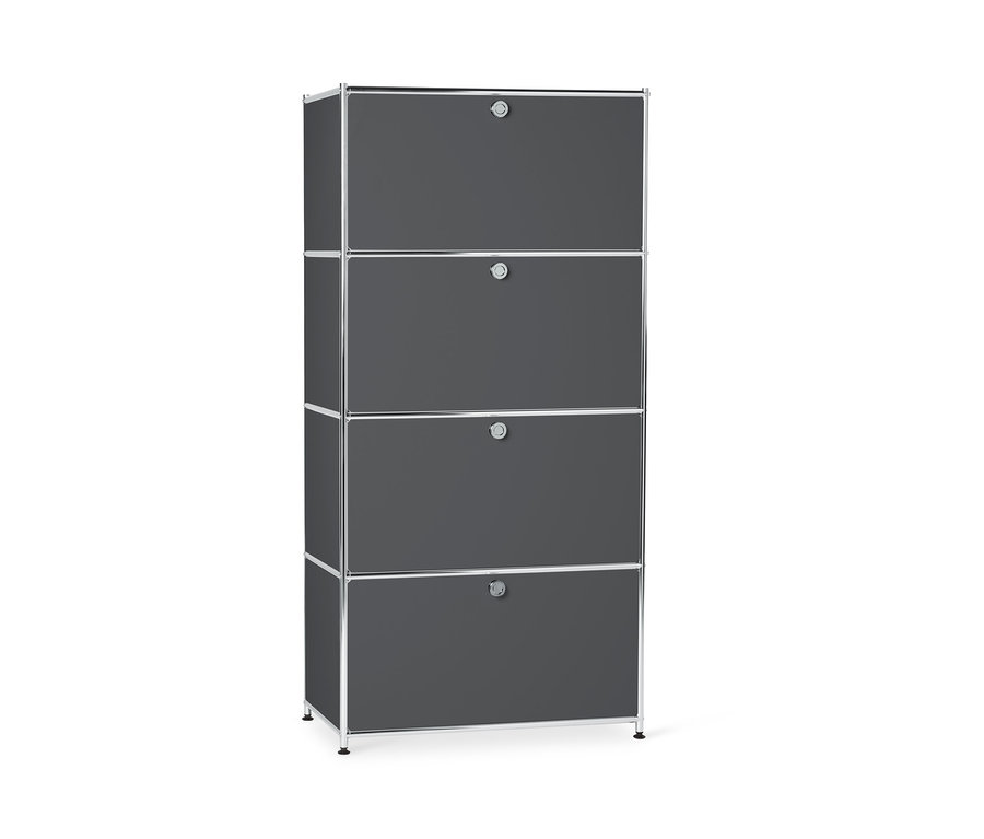 Metalowa szafka typu highboard »CN3« z 4 komorami z klapami, szara