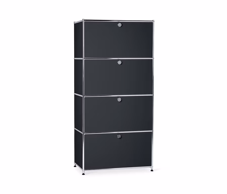 Metalowa szafka typu highboard »CN3« z 4 komorami z klapami, czarna