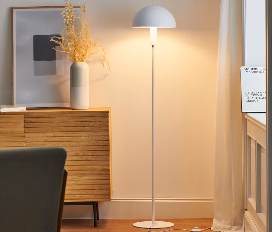 - Lampa podłogowa z nowoczesnym kloszem w kształcie grzybka