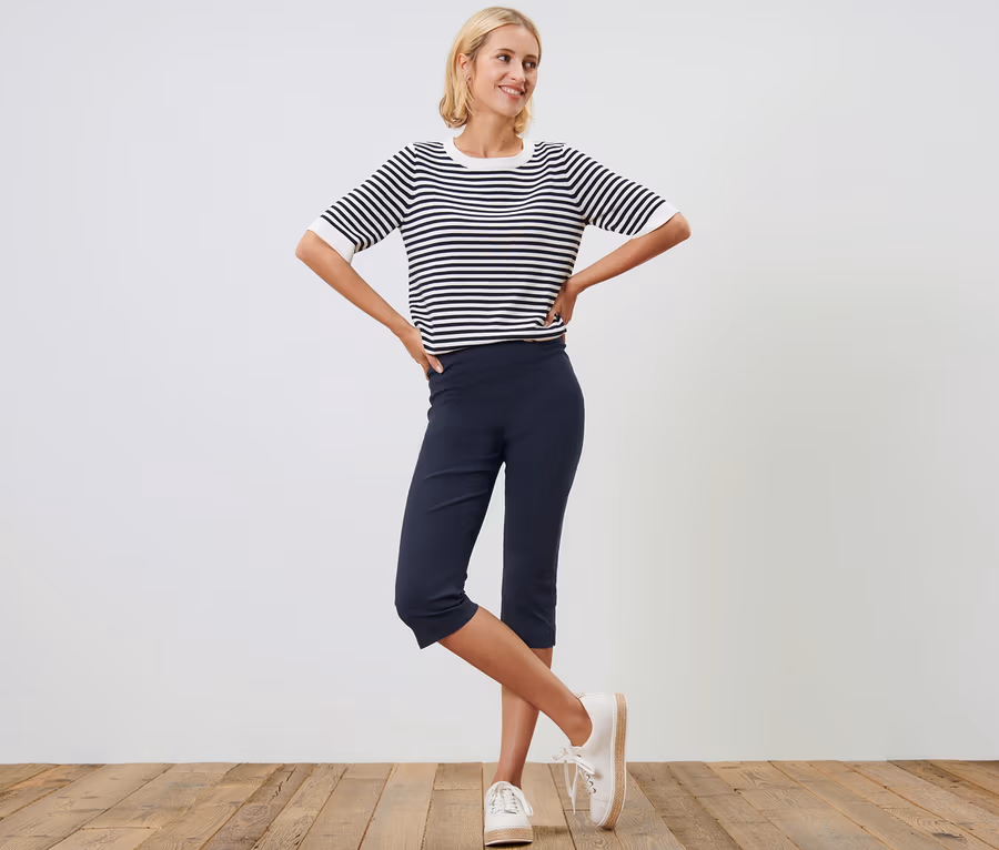 Spodnie stretchowe o długości 3/4, granatowe