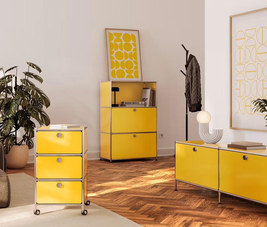 Niska szafka metalowa „CN3” z 2 klapami, żółta
