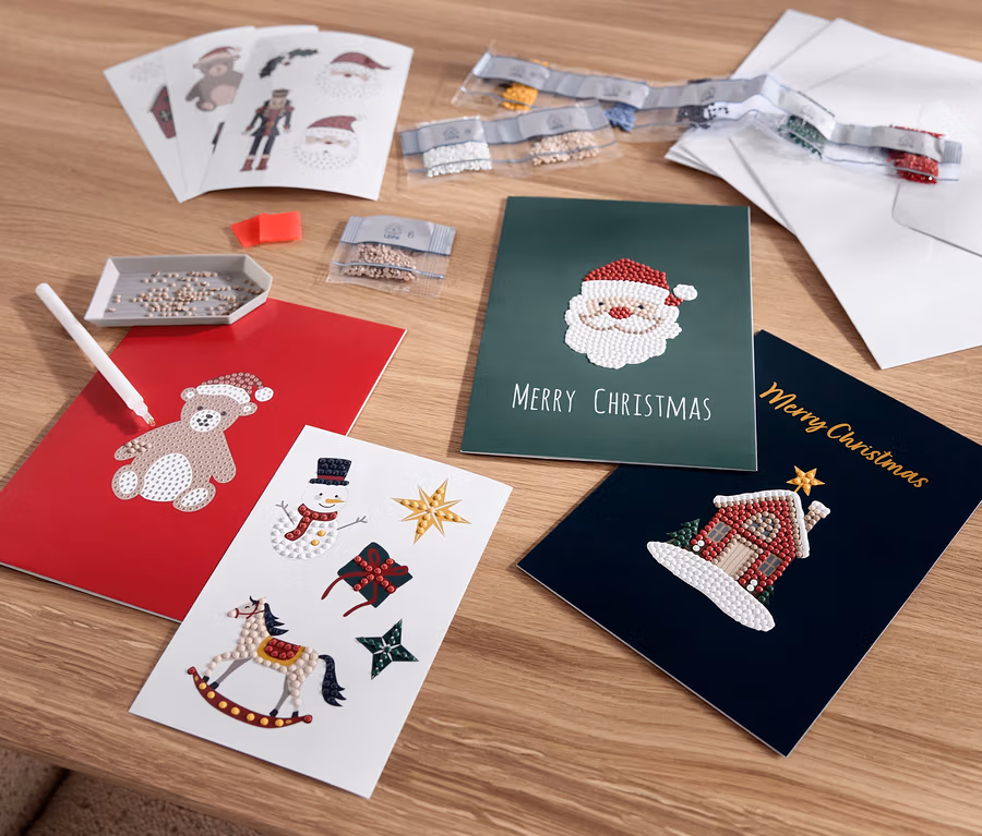 - Zestaw Diamond Painting do tworzenia lśniących kartek bożonarodzeniowych