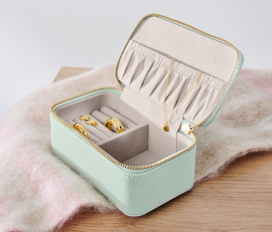 • Podział wewnętrzny z rozmaitymi przegródkami na naszyjniki i pierścionki