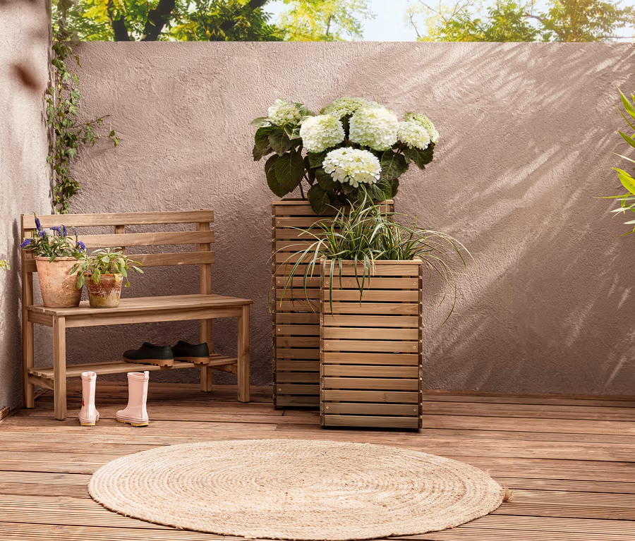 - Z litego drewna z certyfikatem FSC®, pokrytego lazurą