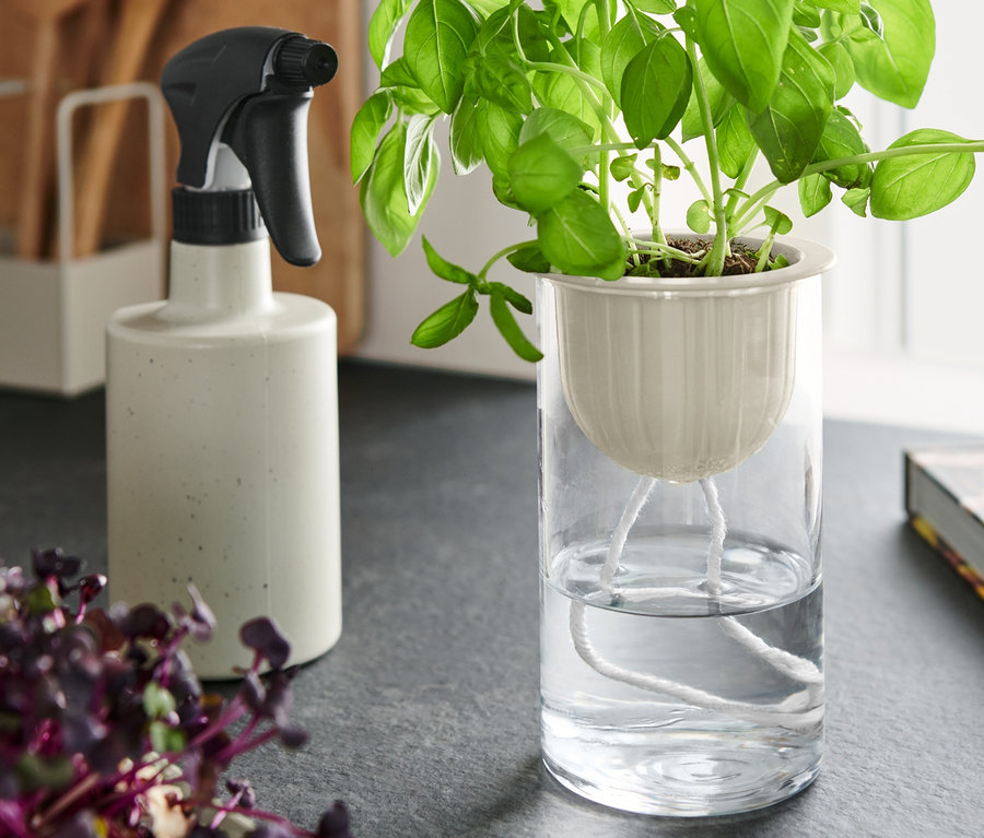 - Nowoczesna szklana doniczka z sitkiem do długiego przechowywania świeżej bazylii