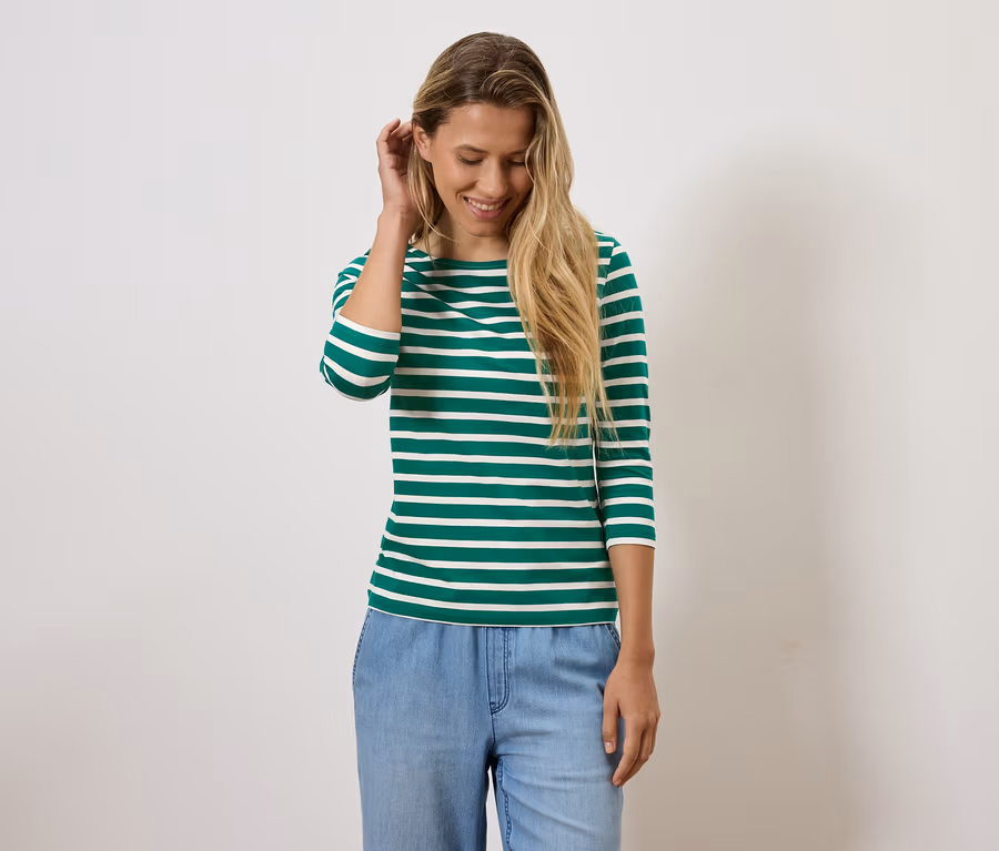 Koszulka z rękawami o długości 3/4, w zielone paski