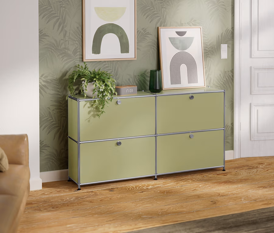 Metalowa szafka typu sideboard „CN3” z 4 klapami, pistacjowa