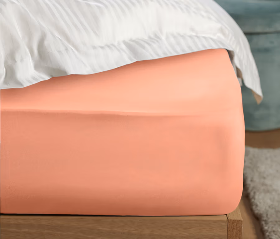 Perkalowe prześcieradło z gumką, morelowe, rozmiar standardowy