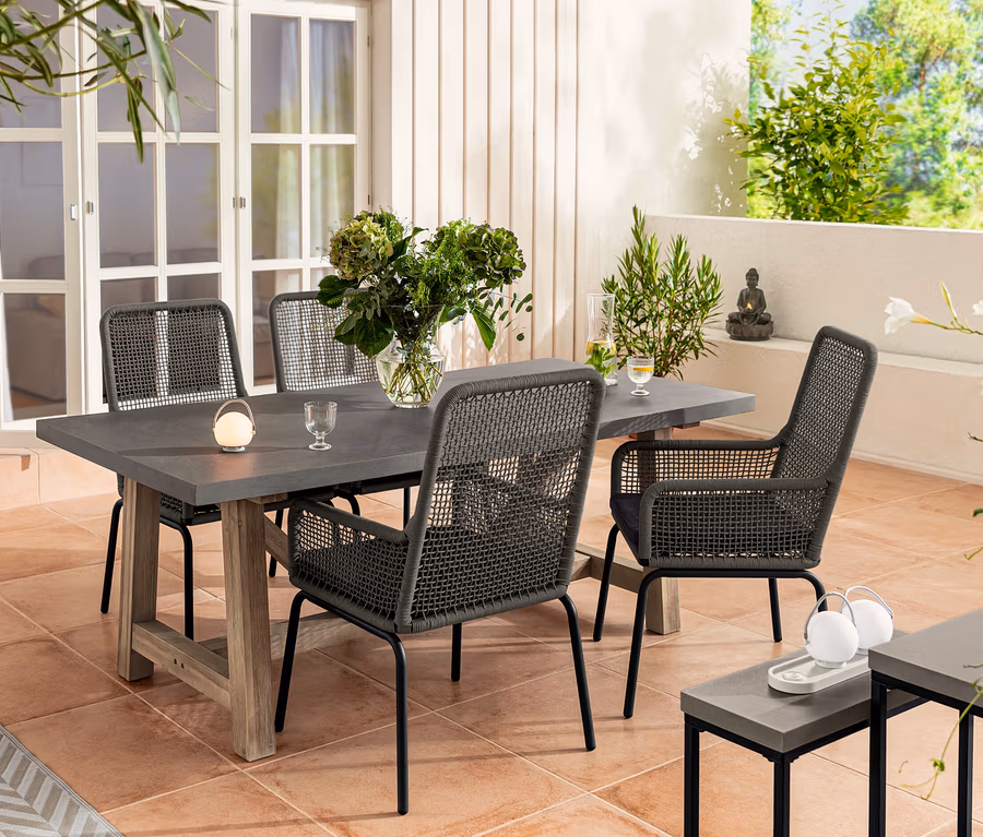 - Siedzisko z odporną na warunki atmosferyczne i szybkoschnącą plecionką tekstylną, odpowiednią do użytku na zewnątrz
