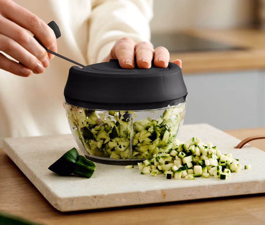 - Szybkie i łatwe rozdrabnianie artykułów żywnościowych takich jak owoce, warzywa, orzechy, cebula lub zioła