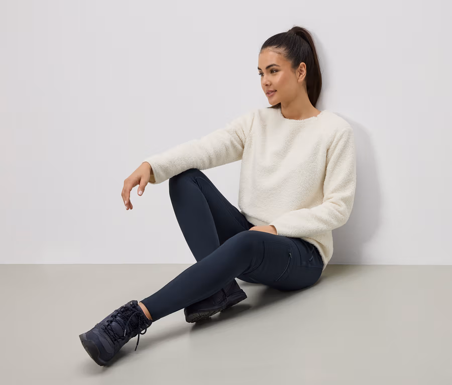 • Miękki, elastyczny materiał z zawartością włókna Creora® – zapewnia optymalną swobodę ruchów