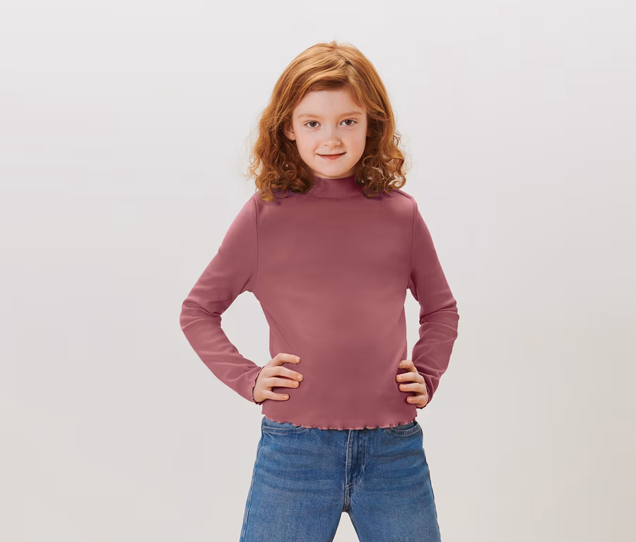 Dziecięca koszulka trykotowa z długim rękawem, malinowa