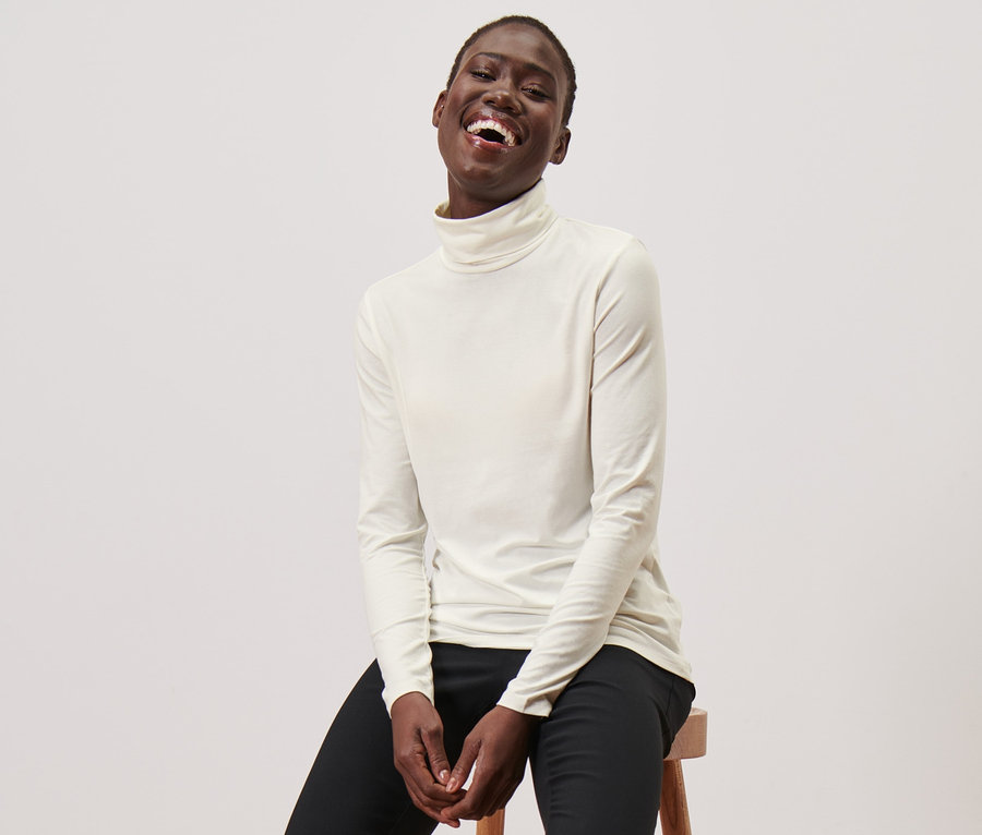 - Proces produkcji tej bluzki z golfem chroni zasoby wodne.