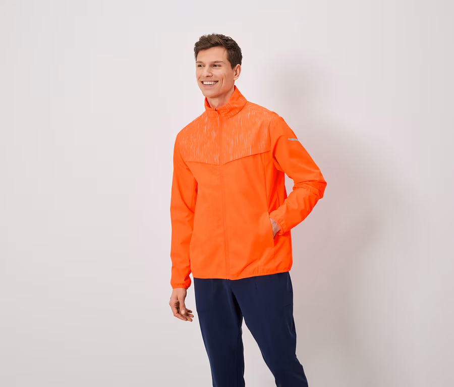 Wiatroszczelna kurtka do biegania, neonowopomarańczowa