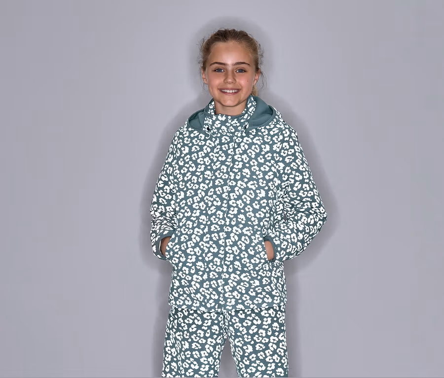 - Szałwiowa z odblaskowym nadrukiem w panterkę w kolorze srebrnym