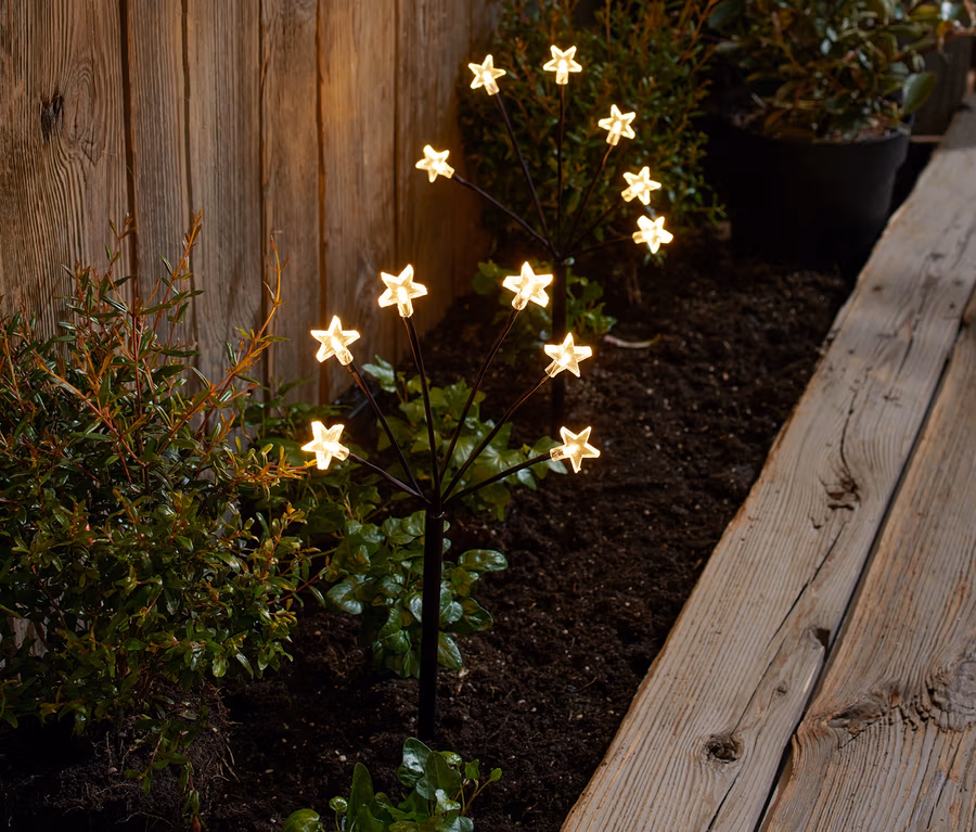- Każda z 6 diodami LED w obudowach w kształcie gwiazd na wyginanych drutach