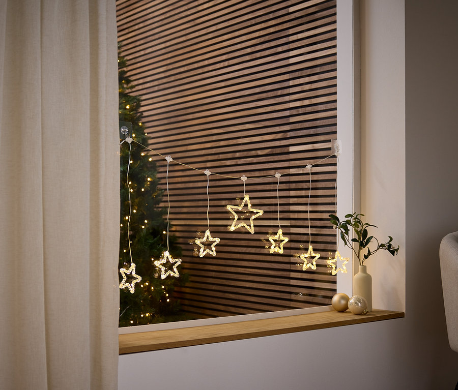 • Akrylowe gwiazdy tworzą nastrojową dekorację okna – barwa światła: ciepła biel