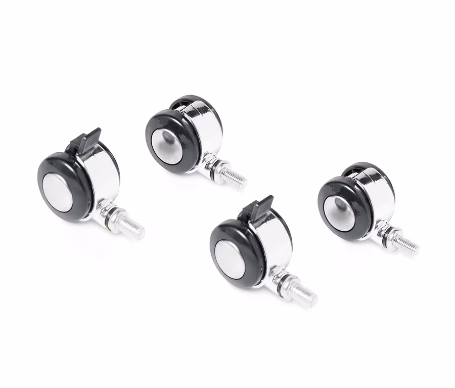 - Kółka z tworzywa sztucznego z chromowanymi detalami