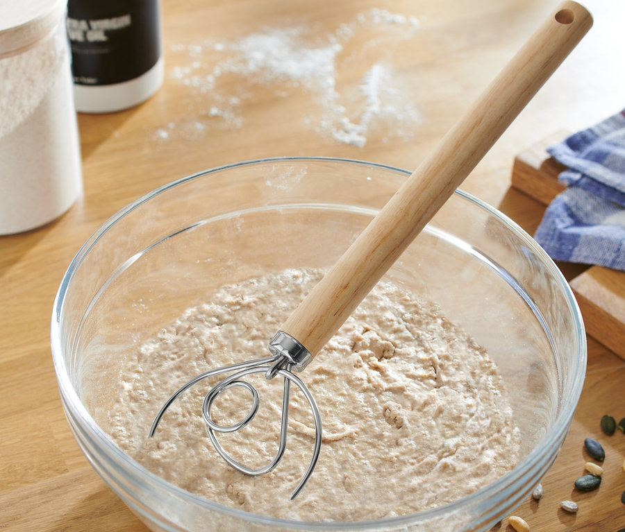 - Metalowy drut należy nasmarować olejem przed wyrabianiem ciasta