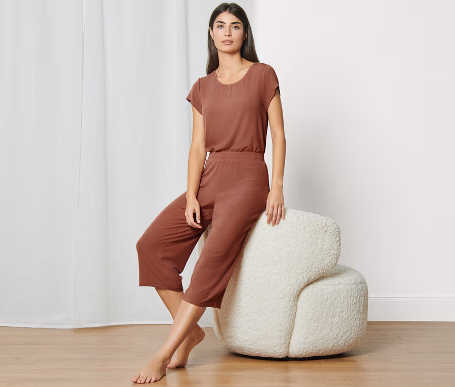 Piżama trykotowa, terakota