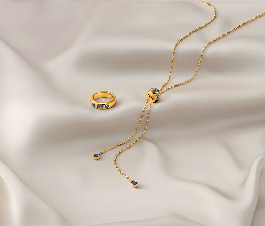 - Pierścionek ze szklanymi kryształkami w odcieniach koloru niebieskiego