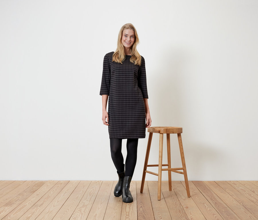 Sukienka dżersejowa z żakardowym wzorem w pepitkę