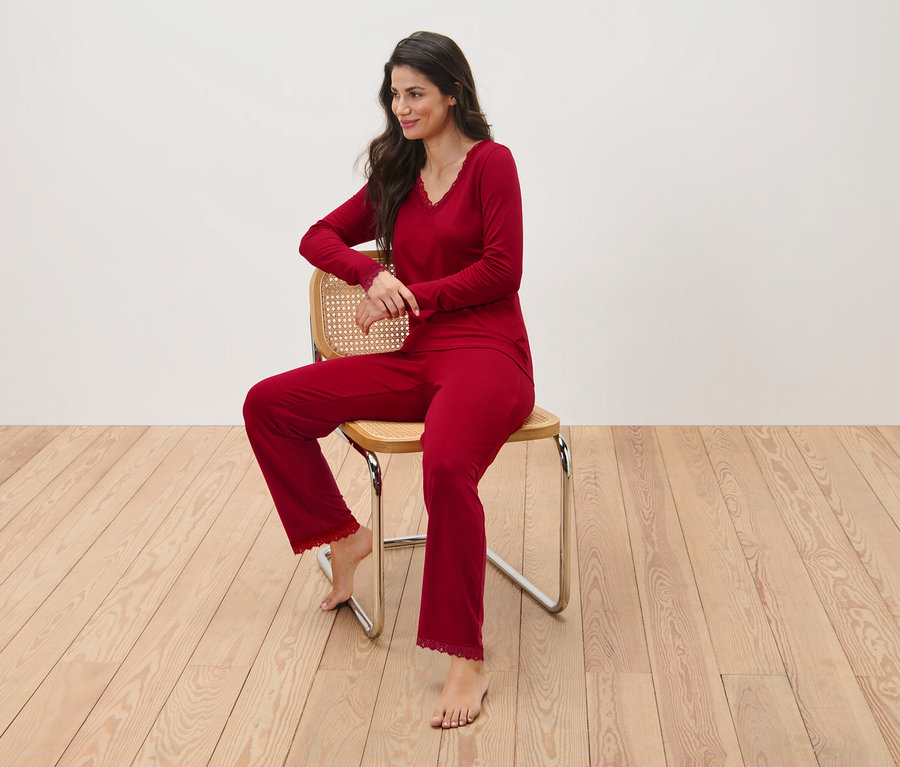 Piżama wykończona koronką, czerwona