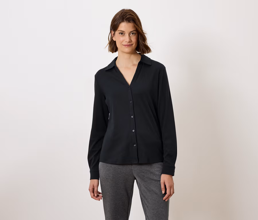 Bluzka z plisą z guzikami, czarna