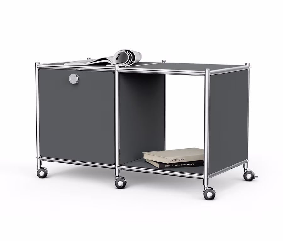 Metalowy stolik „CN3” z jedną klapą i kółkami, szary