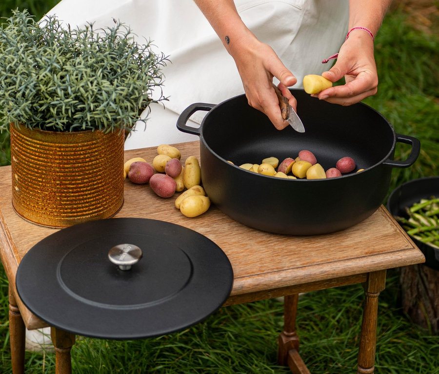 Do stosowania ze wszystkimi źródłami ciepła, w tym na płycie indukcyjnej, w piekarniku lub na grillu