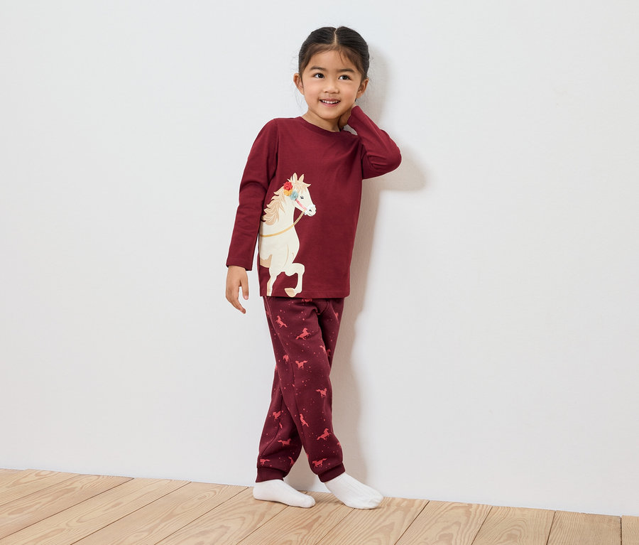 - Bordowe z jasnoczerwonym nadrukiem koni na całej powierzchni