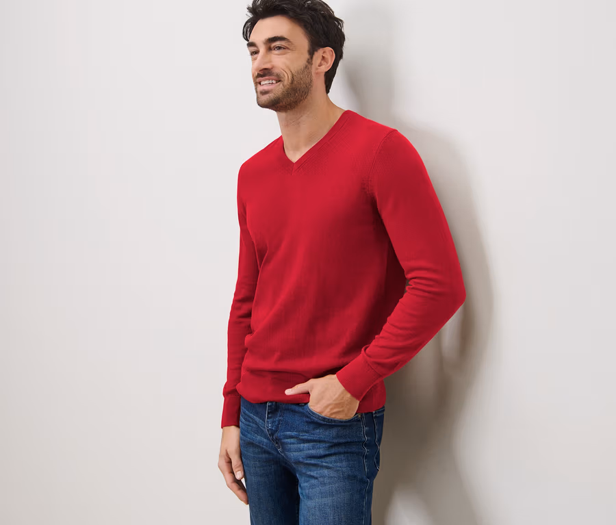 Sweter z dekoltem w serek, czerwony